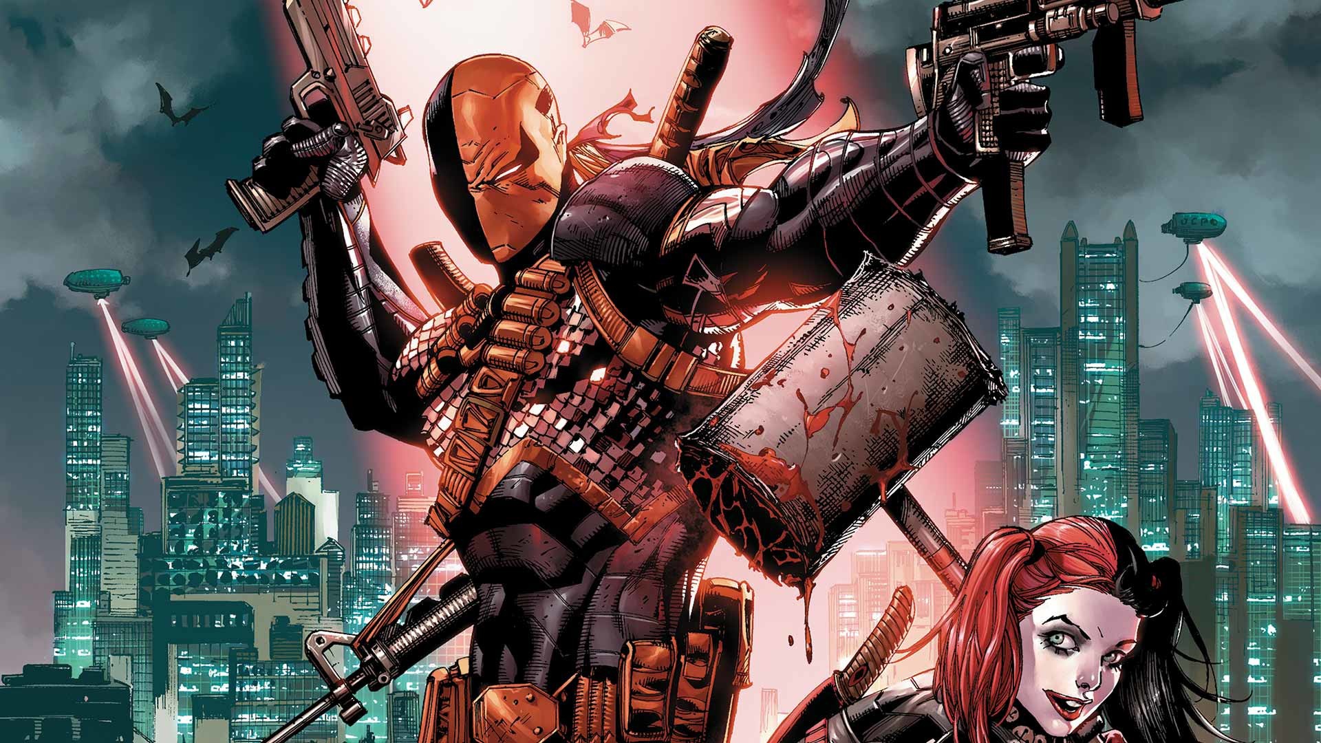 Description: A woman in a costume holding a gun and a gun in her hand.