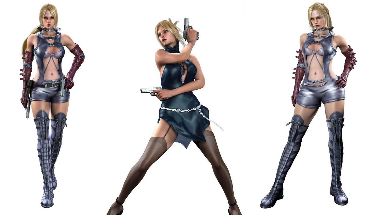 Description: A woman in a costume holding a gun and a gun in her hand.