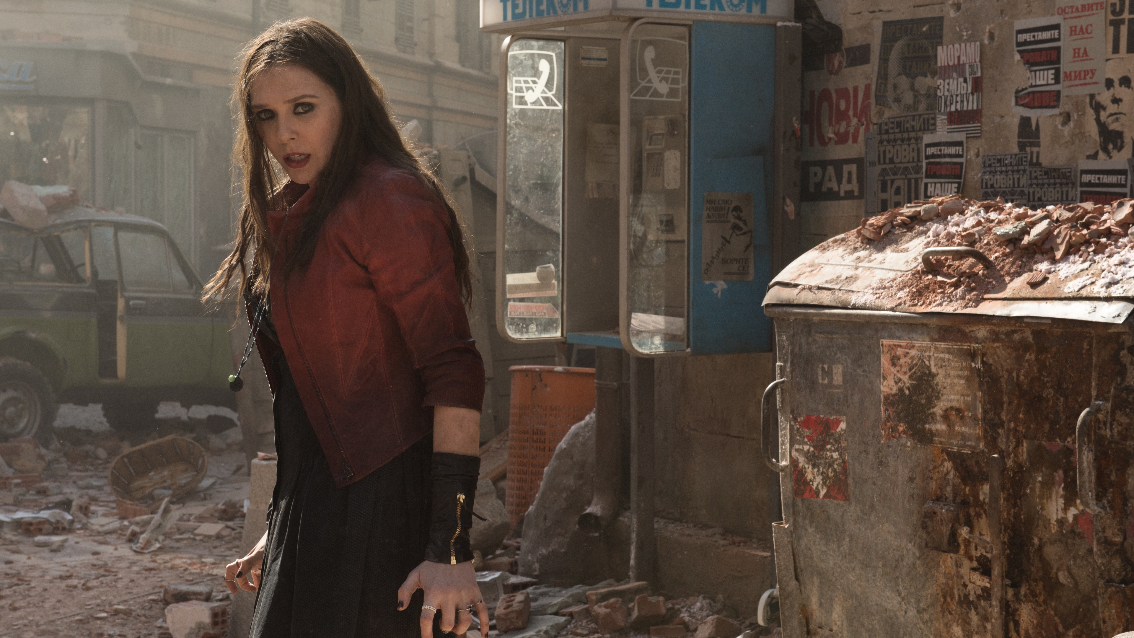 Description: A woman standing in a dirty street with a trash can in the background and a building with a sign on it.