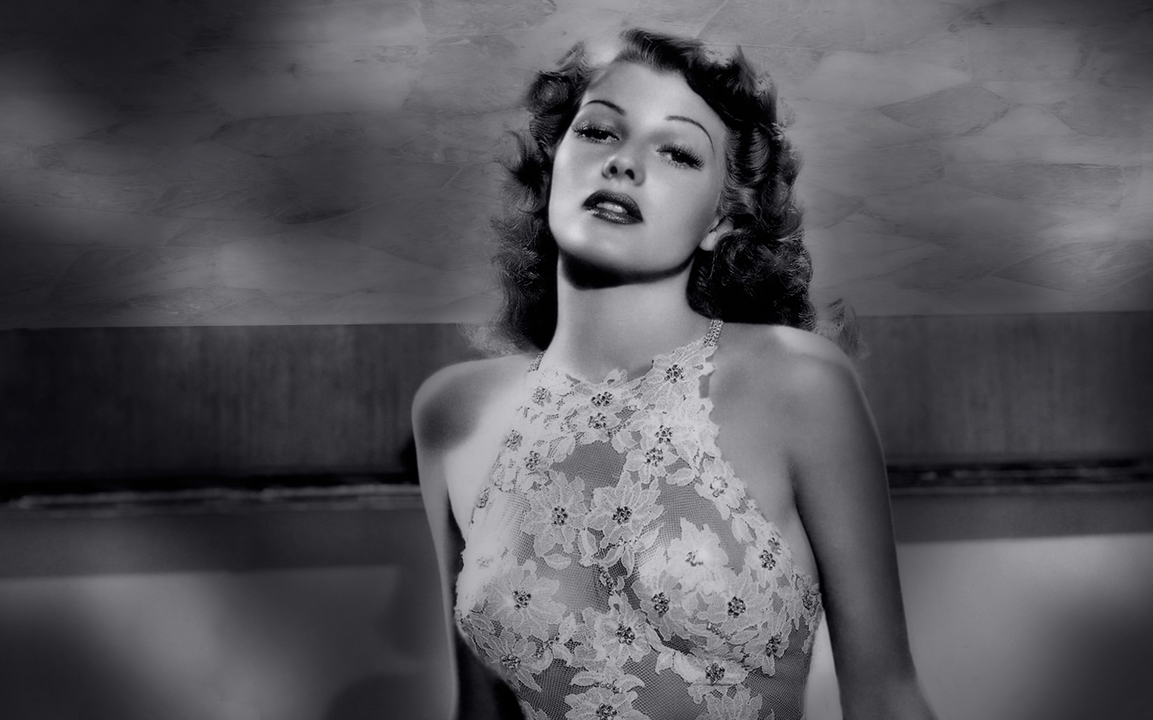 Description: A woman in a dress with a high neck and a high neckline is posing for a picture in a black and white photo.