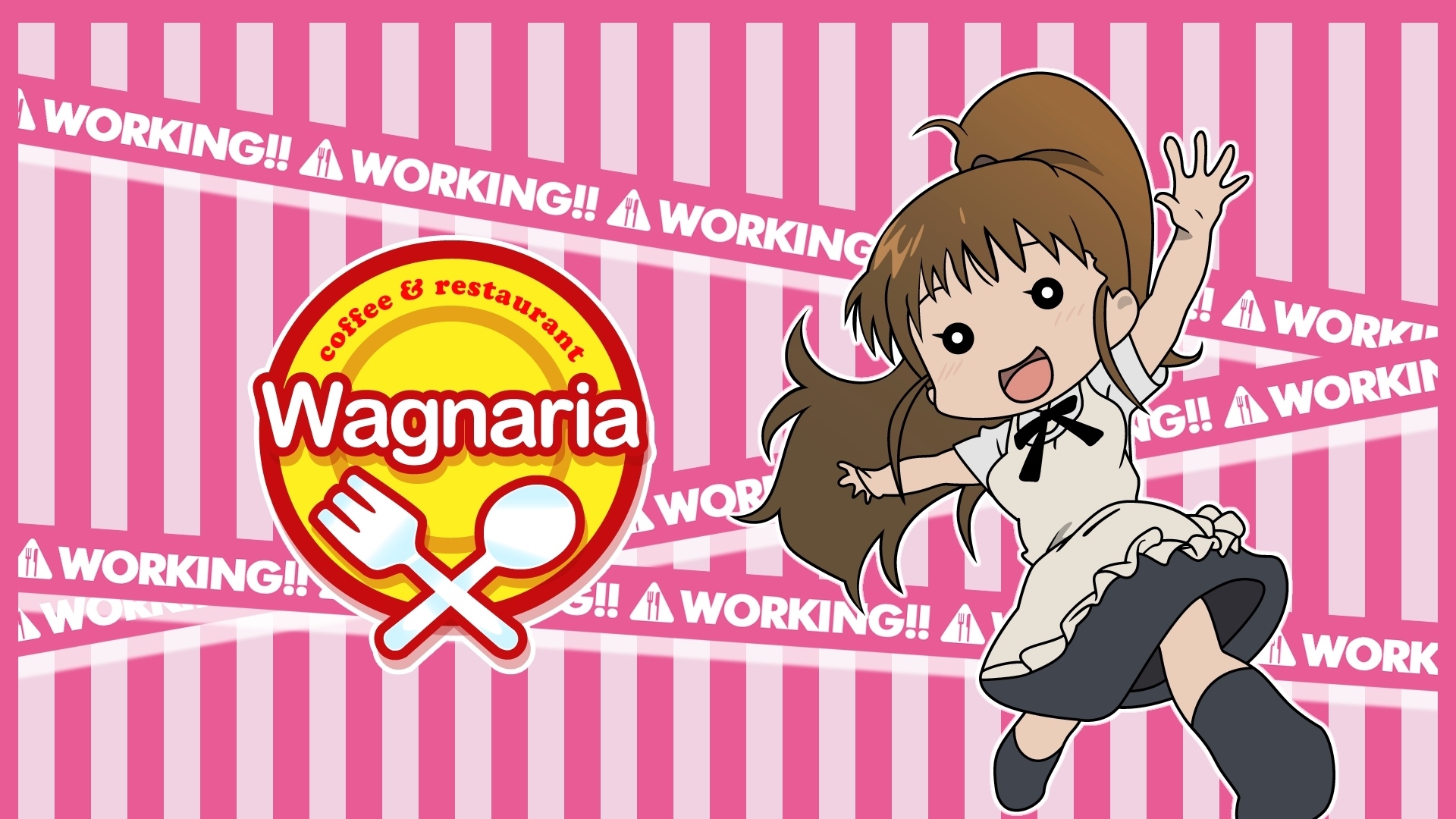 Description: A woman in a dress is jumping in the air with a fork and spoon in her hand and a work sign in the background.