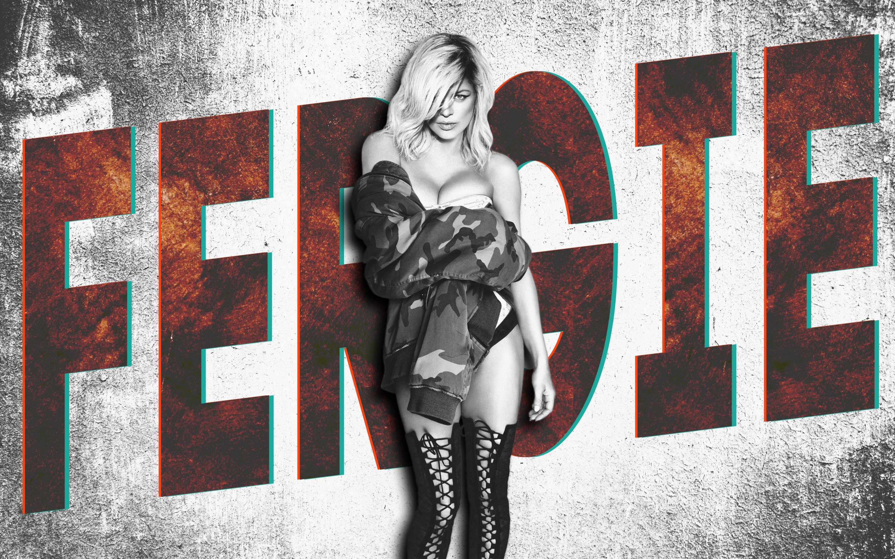Description: A woman in a dress and stockings standing in front of a wall with the word fence on it.