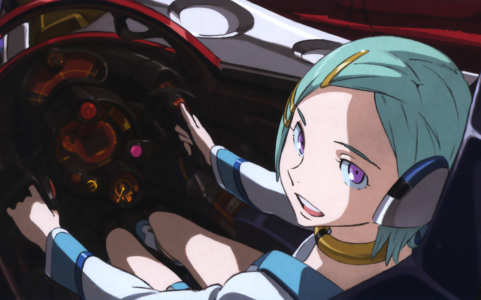 Description: A woman driving a car with a cell phone in her hand and a steering wheel behind her back view.