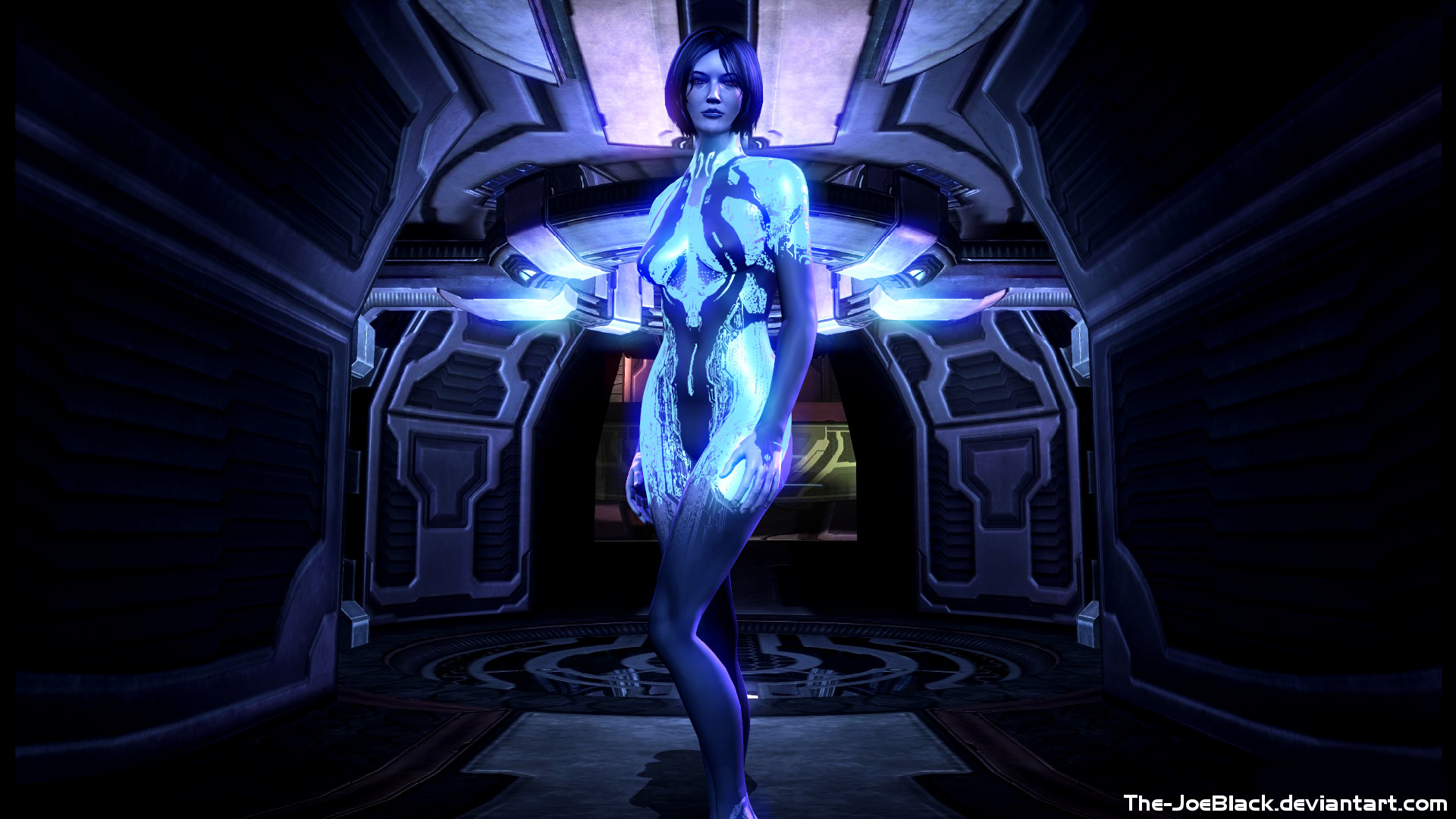 Description: A woman in a futuristic space setting with a blue light on her body and a blue light on her chest.