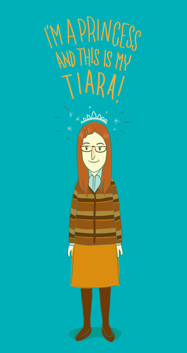 Description: A woman with glasses and a brown coat with a blue background and a quote above her that says.