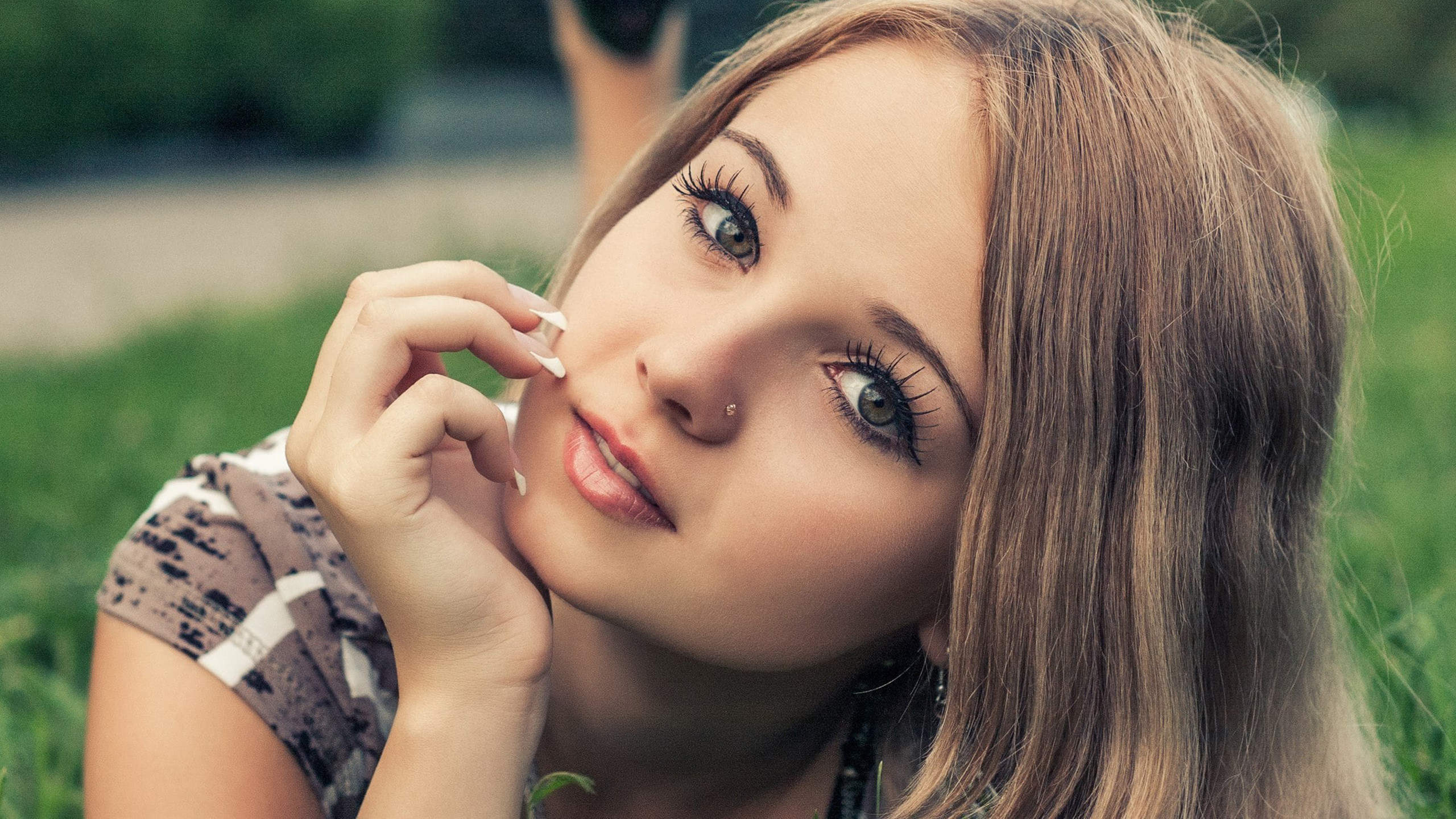 Description: A woman laying in the grass with her eyes closed and a cigarette in her mouth.