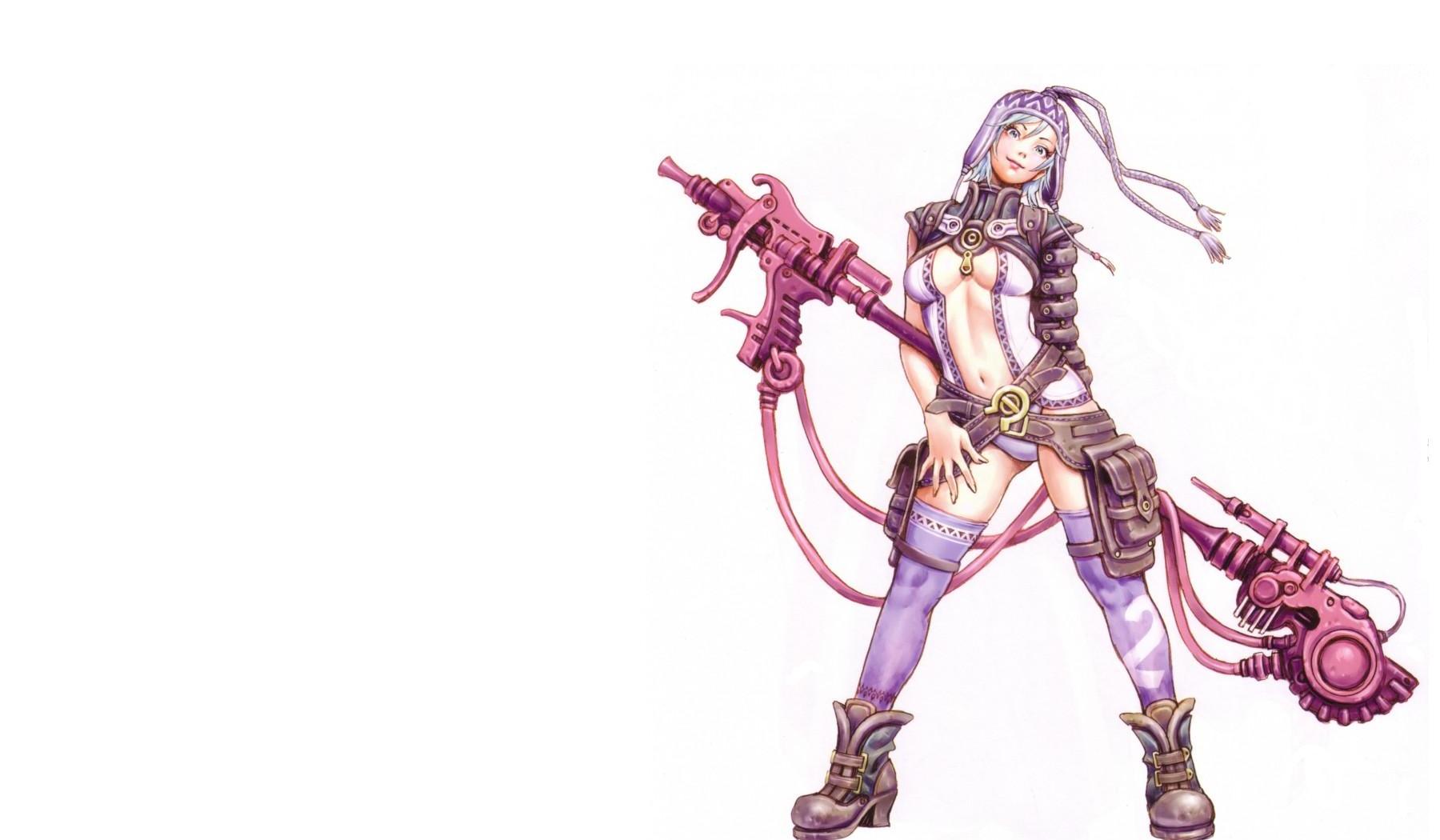 Description: A drawing of a woman with a gun and a gun in her hand and a gun in her other hand.