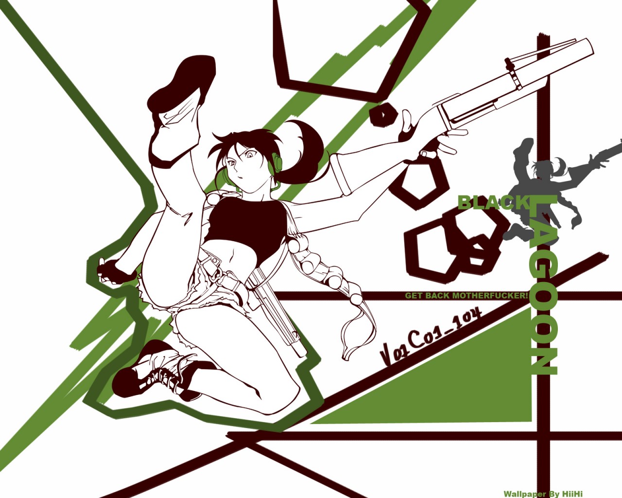 Description: A woman holding a gun in her hand and a man holding a gun in her hand with a green and black background.