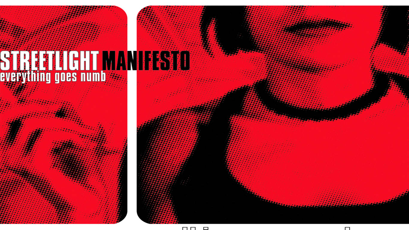 Description: A woman with her hand on her head and a red background with the words streetlight manifest on it.
