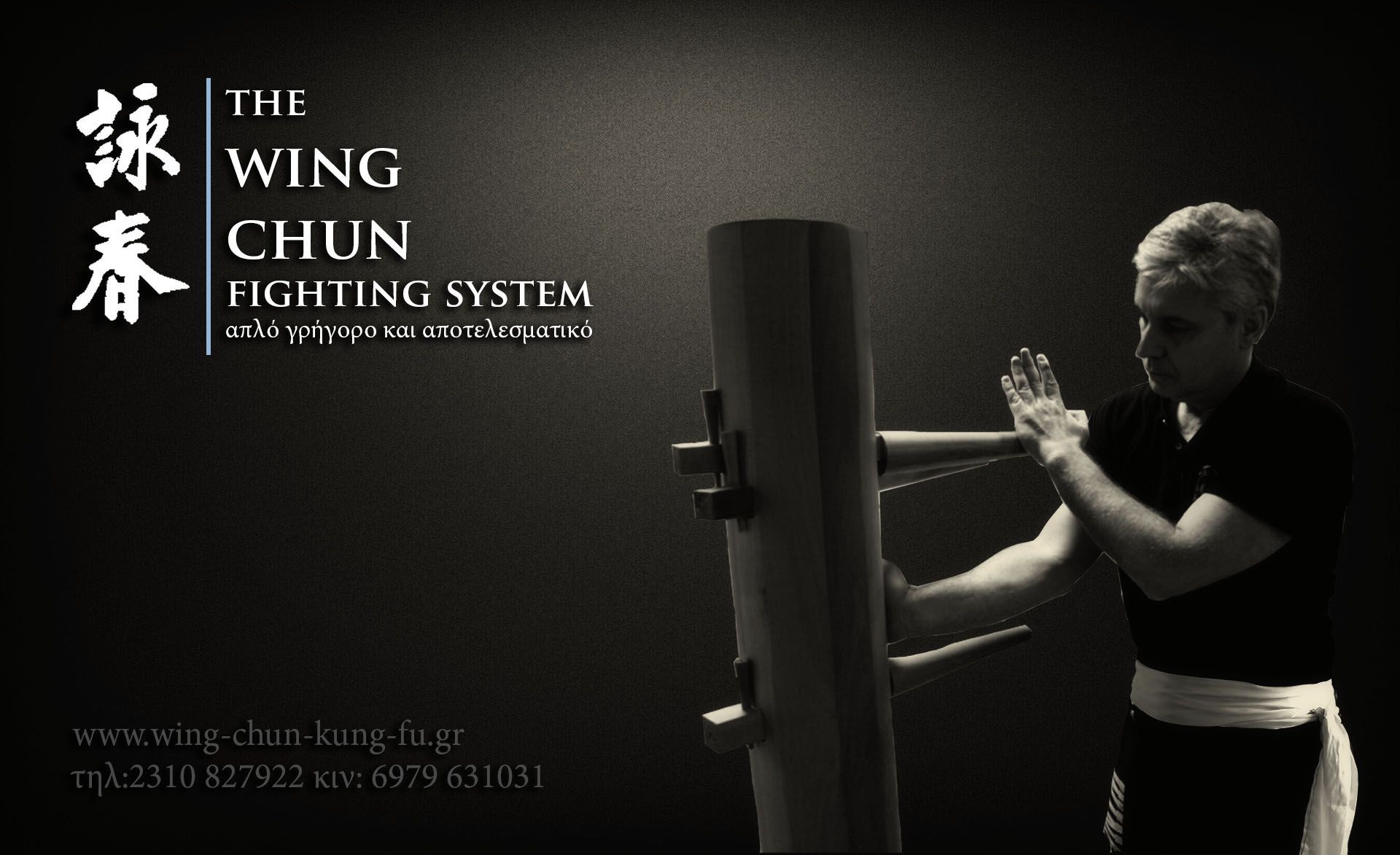 Description: A woman is doing a hand stand on a machine with a black background and white lettering that reads the wing chun fighting system.