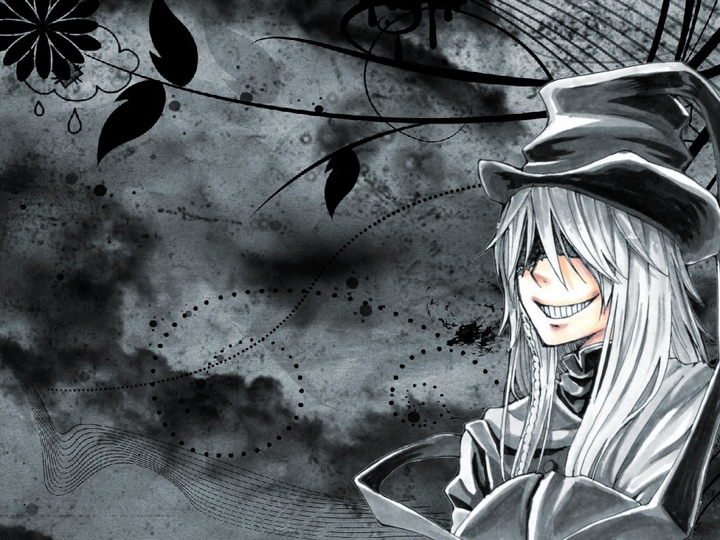 Description: A drawing of a woman with a hat and a coat on her head and a black and white background.