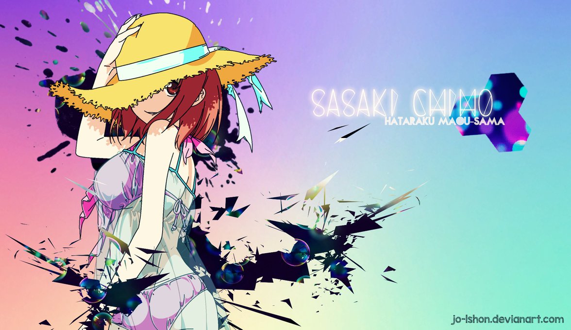 Description: A woman with a hat and a dress on and a splash of paint on her face and the words sasaku chiko.