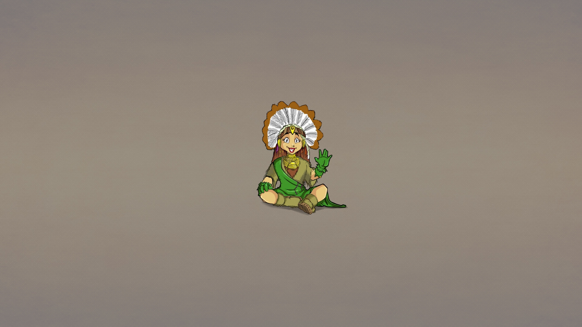 Description: A cartoon of a woman sitting on the ground with a hat on her head and a green dress on.
