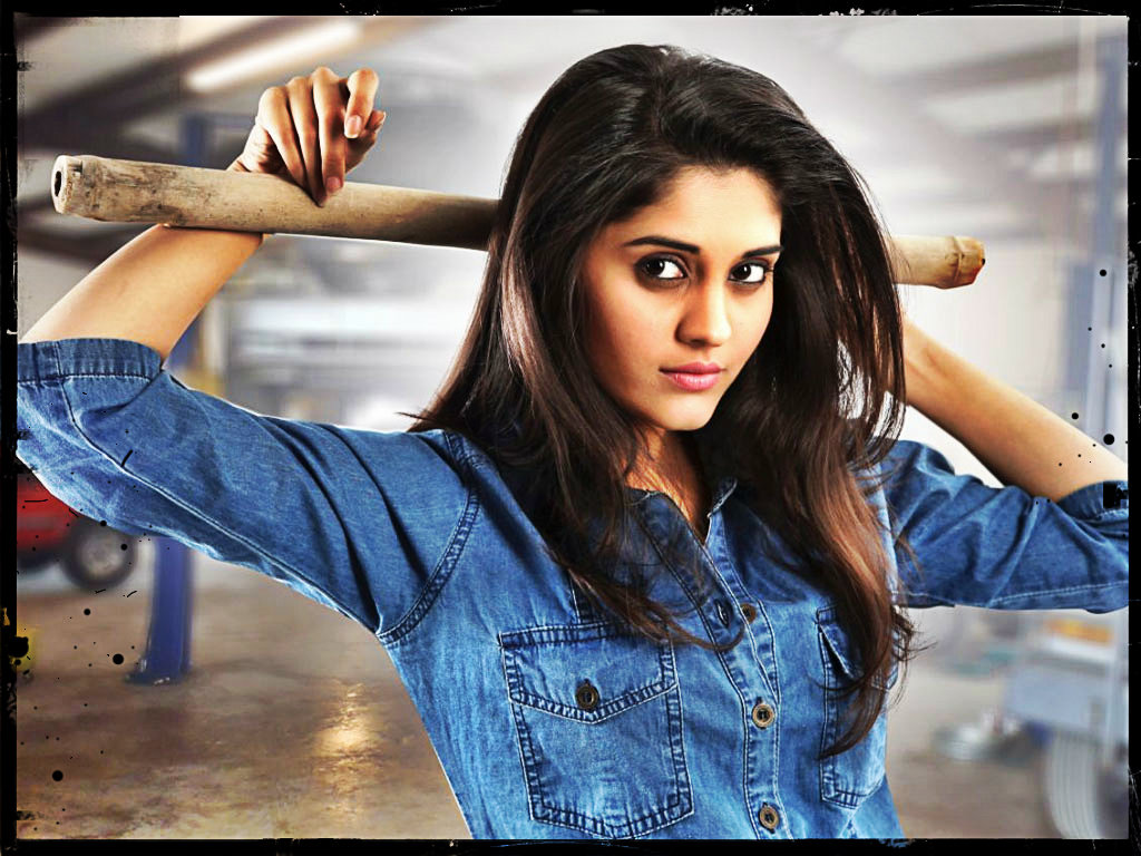 Description: A woman holding a baseball bat over her head in a garage area with a car in the background and a building in the background.