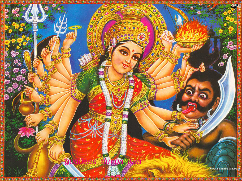 Description: A painting of a woman holding a bowl of fire with two men behind her and a demon behind her.