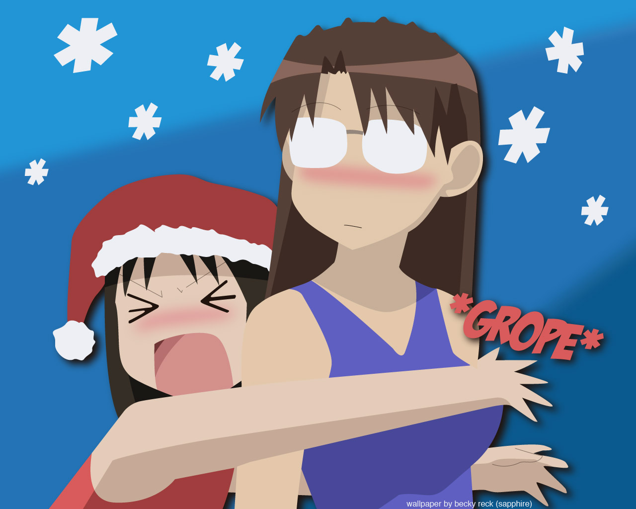 Description: A woman holding a man with a santa hat on his head and a sign that says.