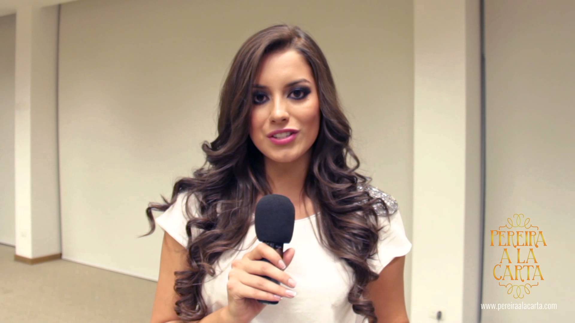 Description: A woman holding a microphone in her hand and smiling at the camera while standing in front of a mirror.