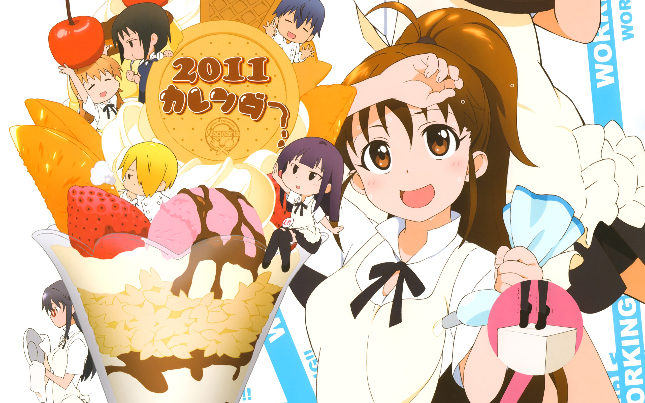 Description: A woman holding a cup of ice cream with other women around her and a sign that says 2010 in japanese.