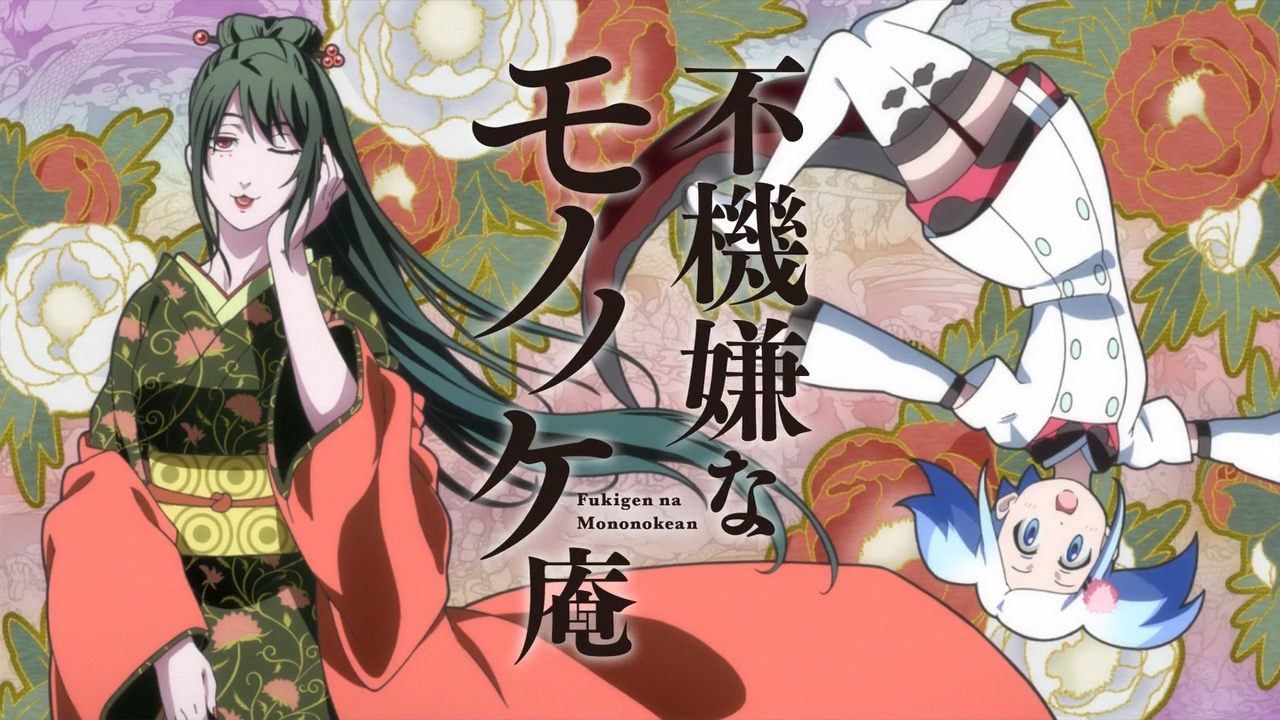 Description: A woman in a kimono and a man in a kimono and flowers in the background with asian characters.