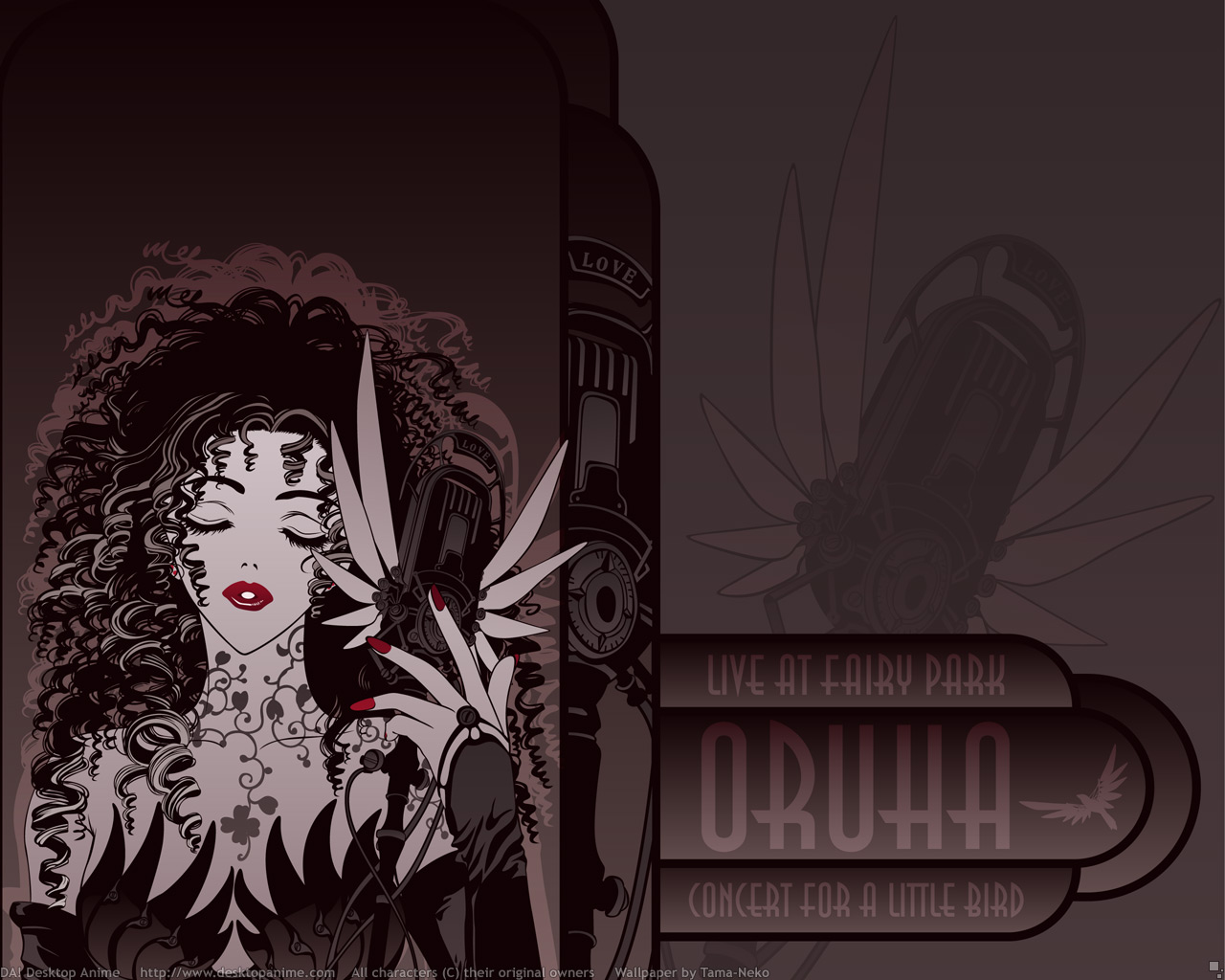 Description: A woman holding a knife in her hand with a sign in the background that says oroha on it.