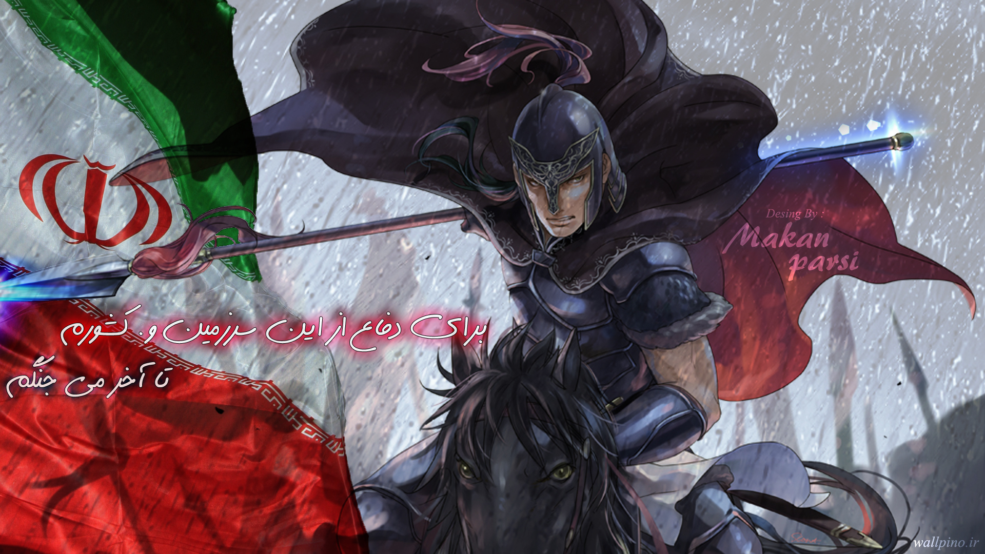 Description: A woman in a knight costume riding a horse with a flag in the background and a banner in the foreground.