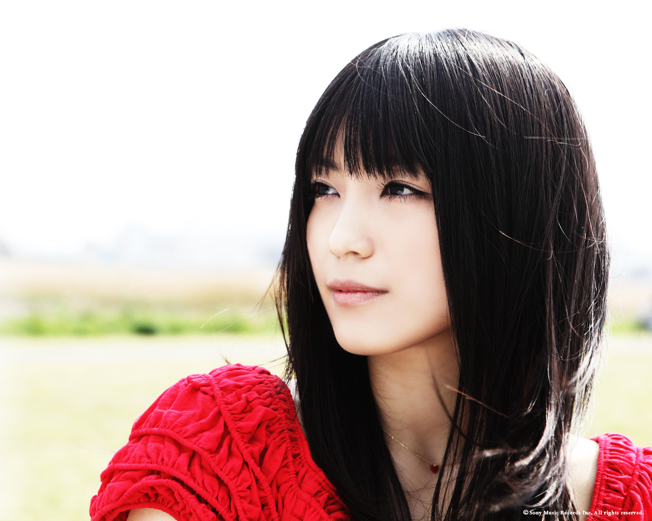 Description: A woman with long black hair and a red sweater on.