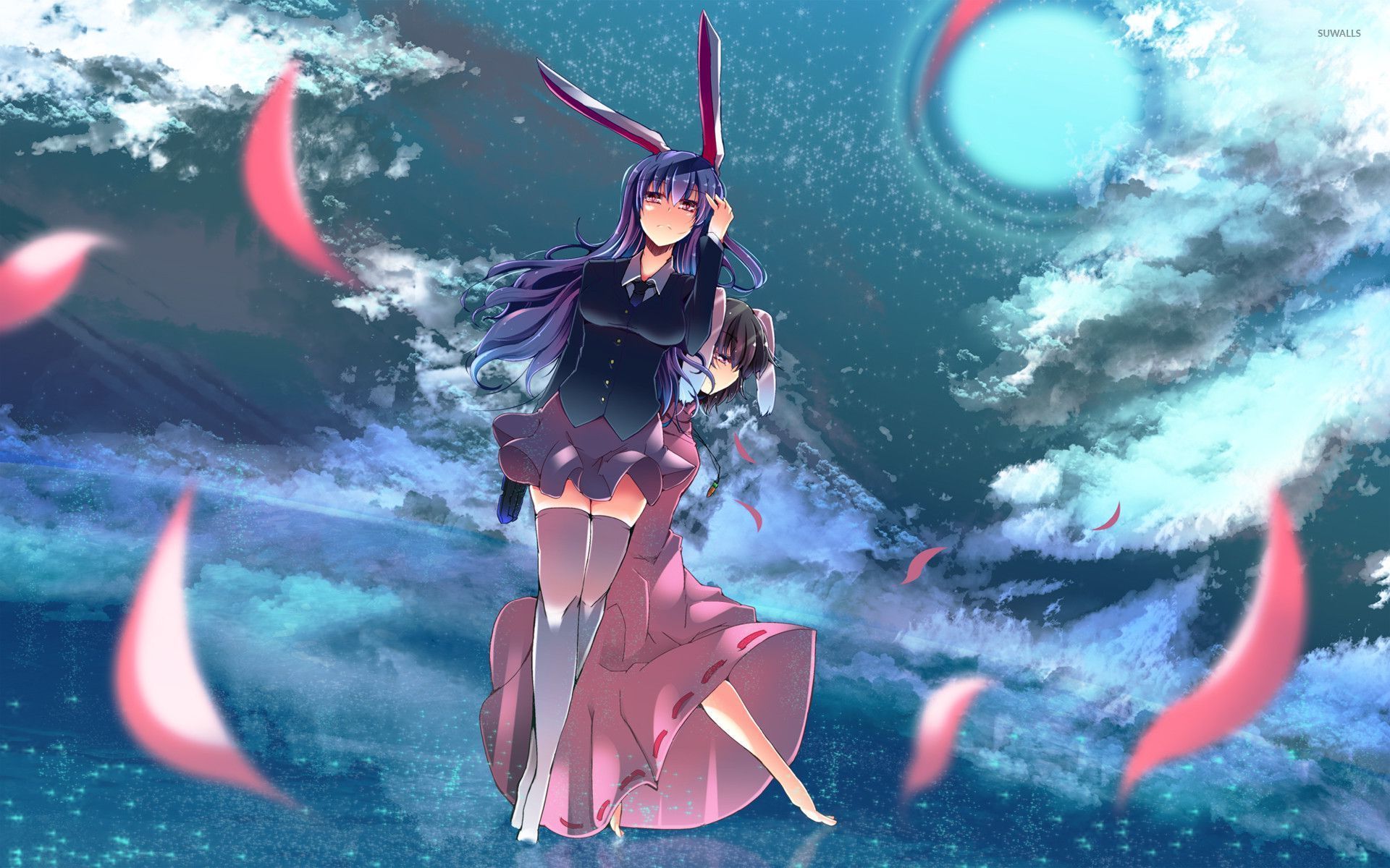 Description: A woman in a long dress standing on a wave in the ocean with a sword in her hand and a sky with clouds and stars.