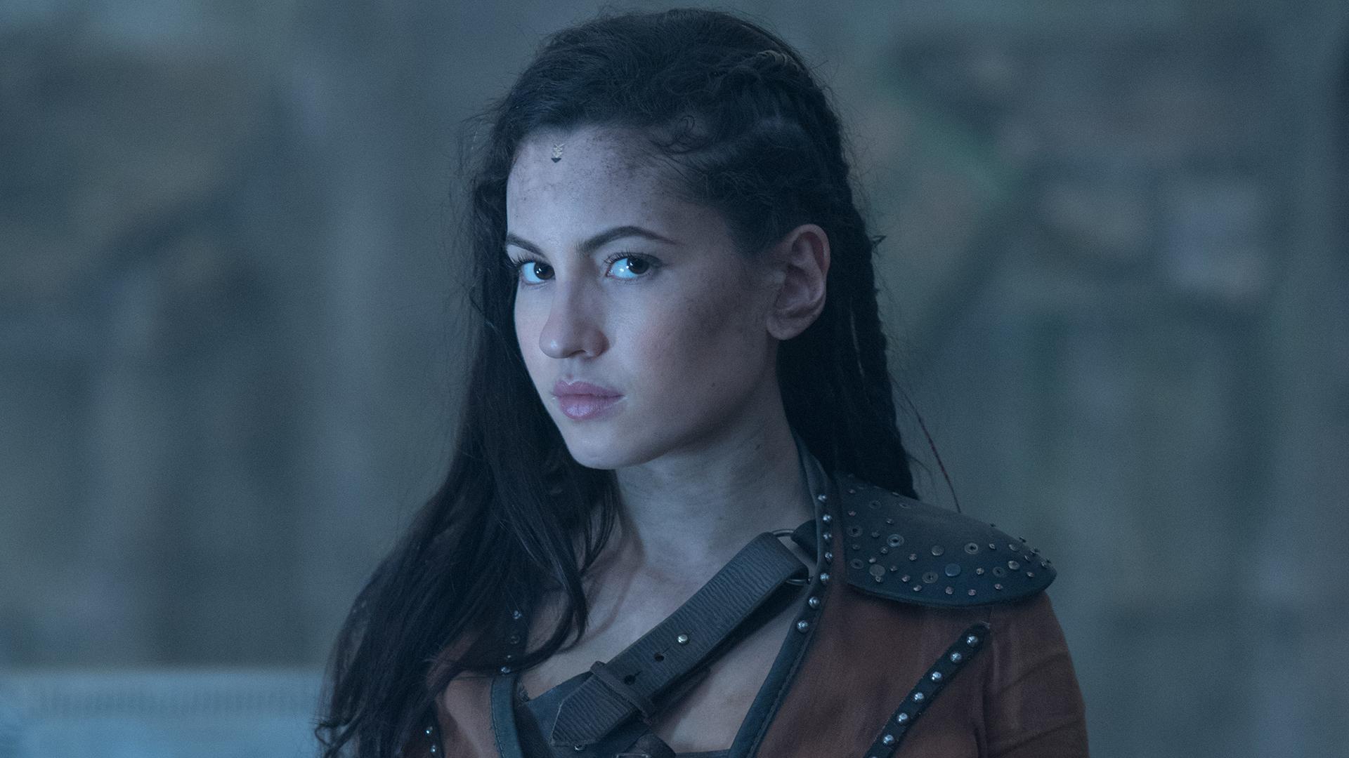 Description: A woman with long hair and a leather jacket on.