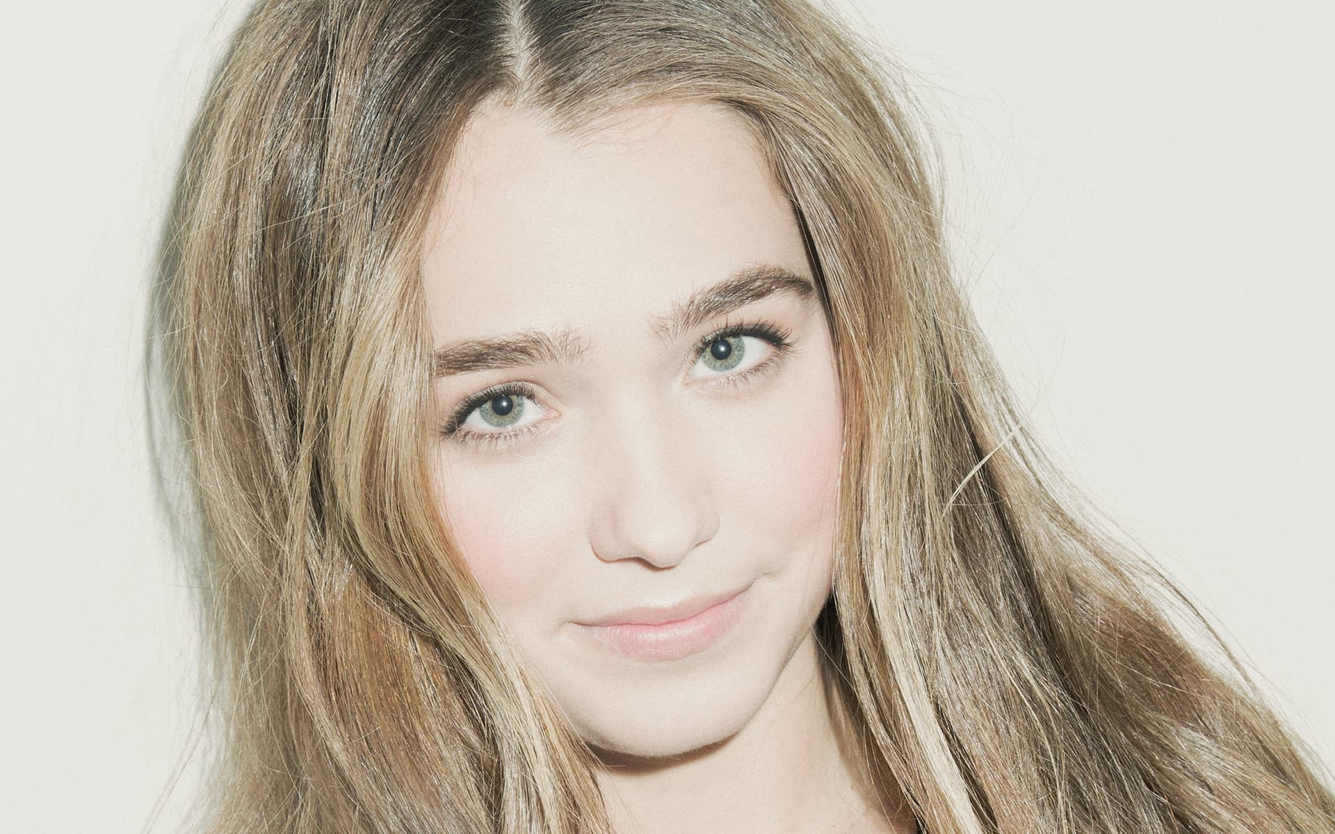 Description: A woman with long hair and a necklace on her neck posing for a picture with a white background and a white background.
