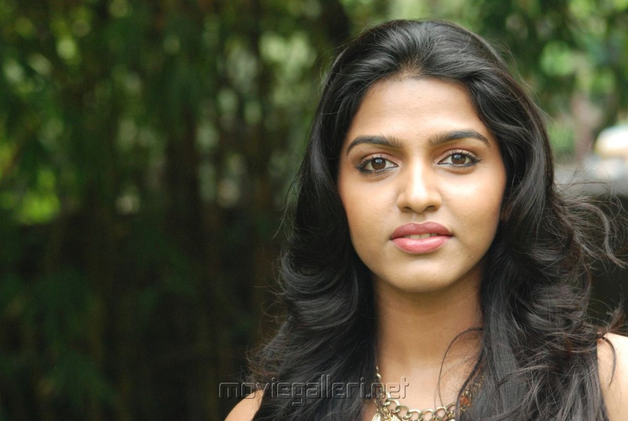Description: A woman with long hair and a necklace on her neck looking at the camera with a serious look on her face.