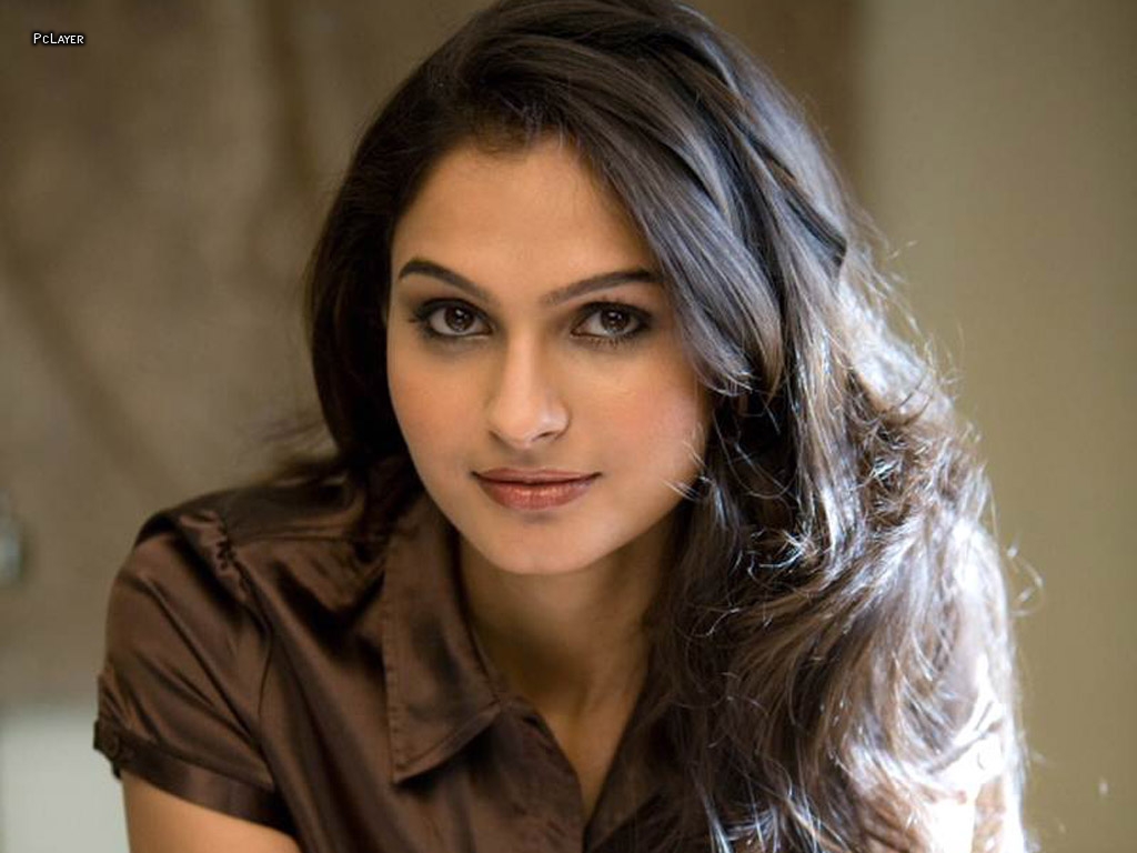 Description: A woman with long hair is posing for a picture with a cell phone in her hand and a brown shirt on.