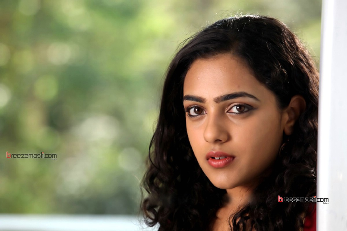 Description: A woman with long hair and a red top looking at the camera with a serious look on her face.