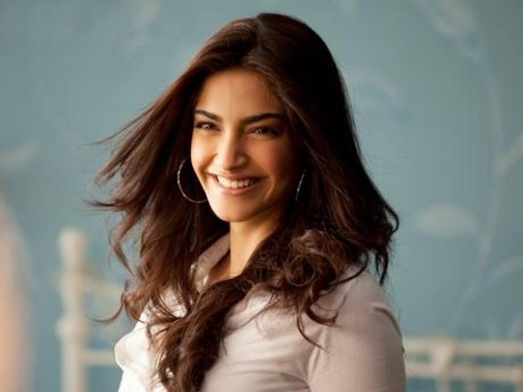Description: A woman with long hair smiling at the camera with a blue wall behind her and a white bed in the background.