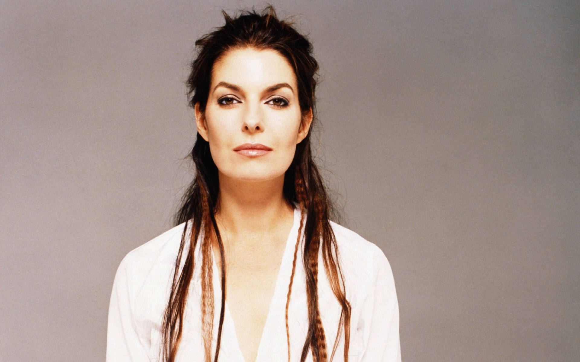 Description: A woman with long hair and a white shirt on posing for a picture with her hair in a ponytail.