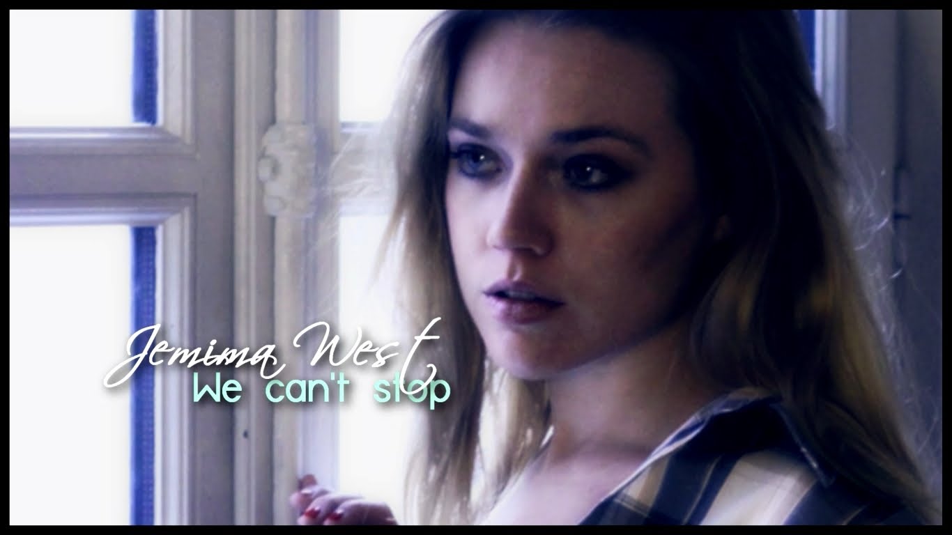 Description: A woman with long hair standing in front of a window with a message above her head that reads.
