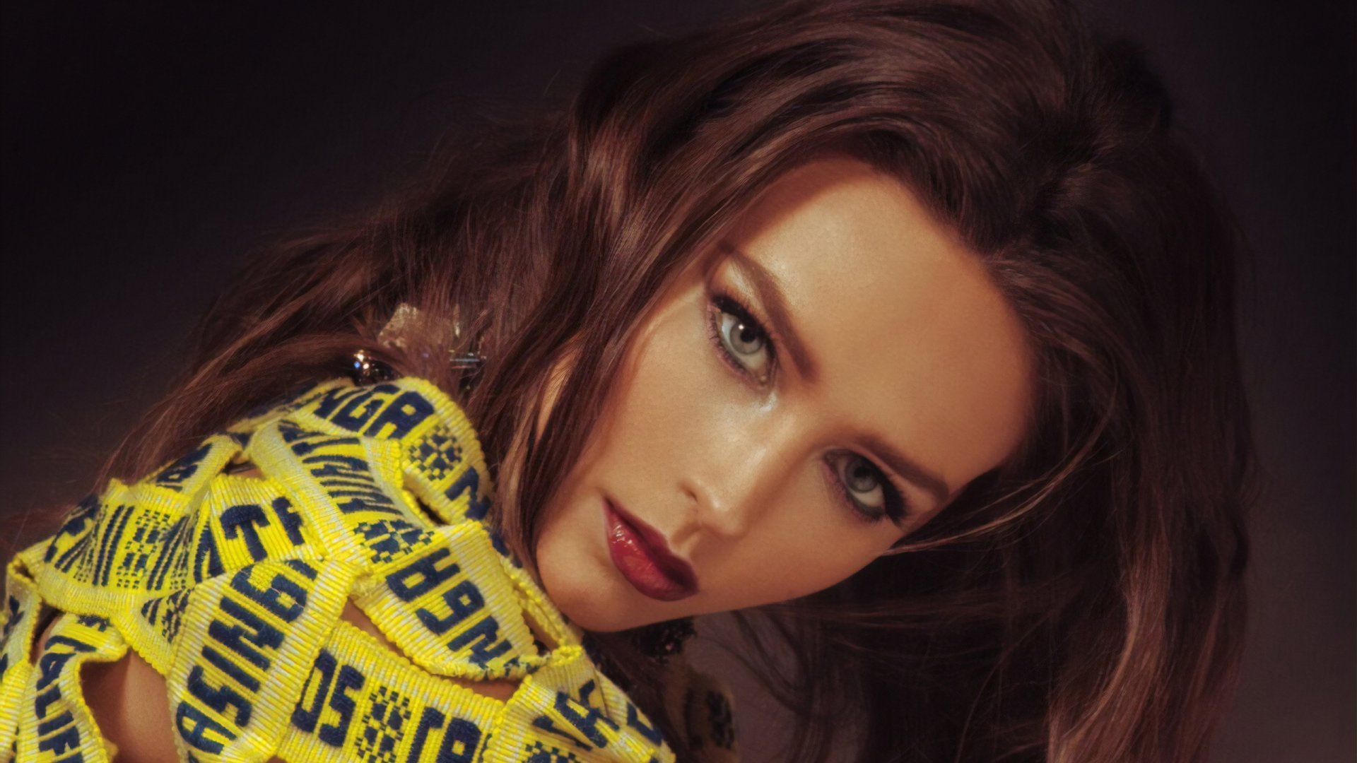 Description: A woman with long hair and a yellow shirt on posing for a picture with her hands on her hips.