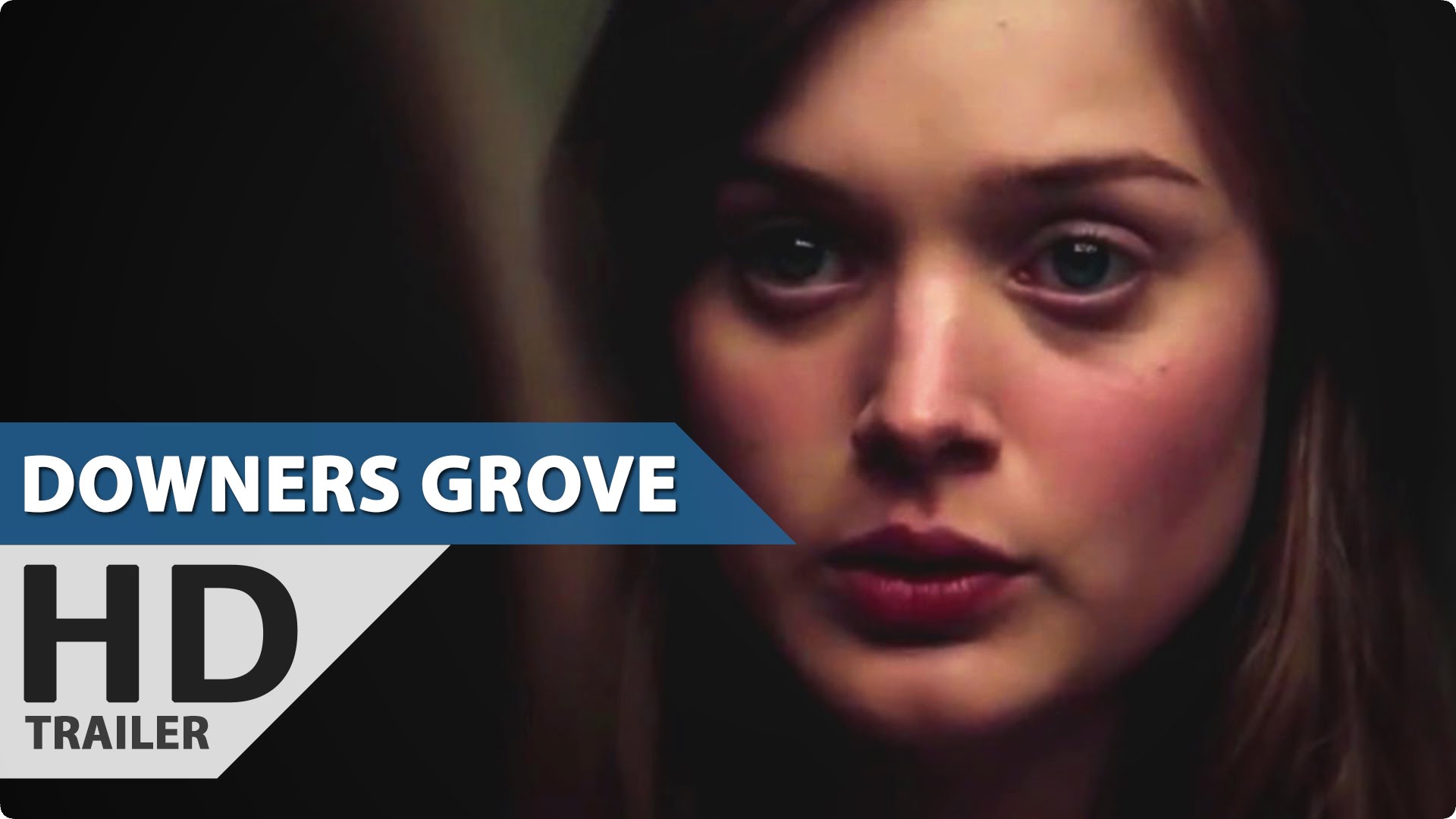 Description: A woman with long hair and a blue sign that says downers grove on it's side and a blue arrow over her left eye.