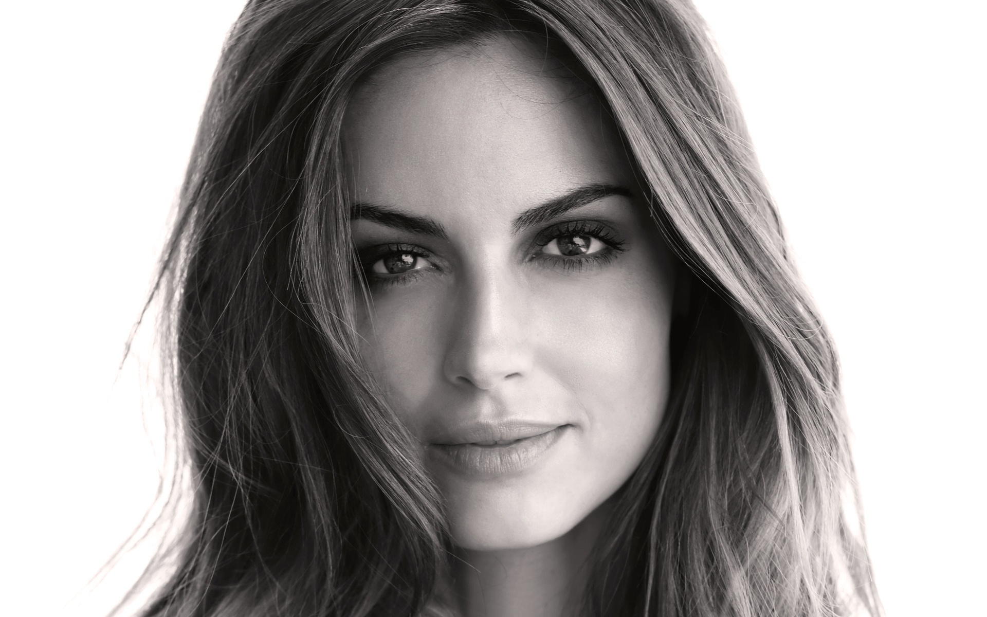 Description: A woman with long hair and a necklace on her neck looking at the camera with a smile on her face.