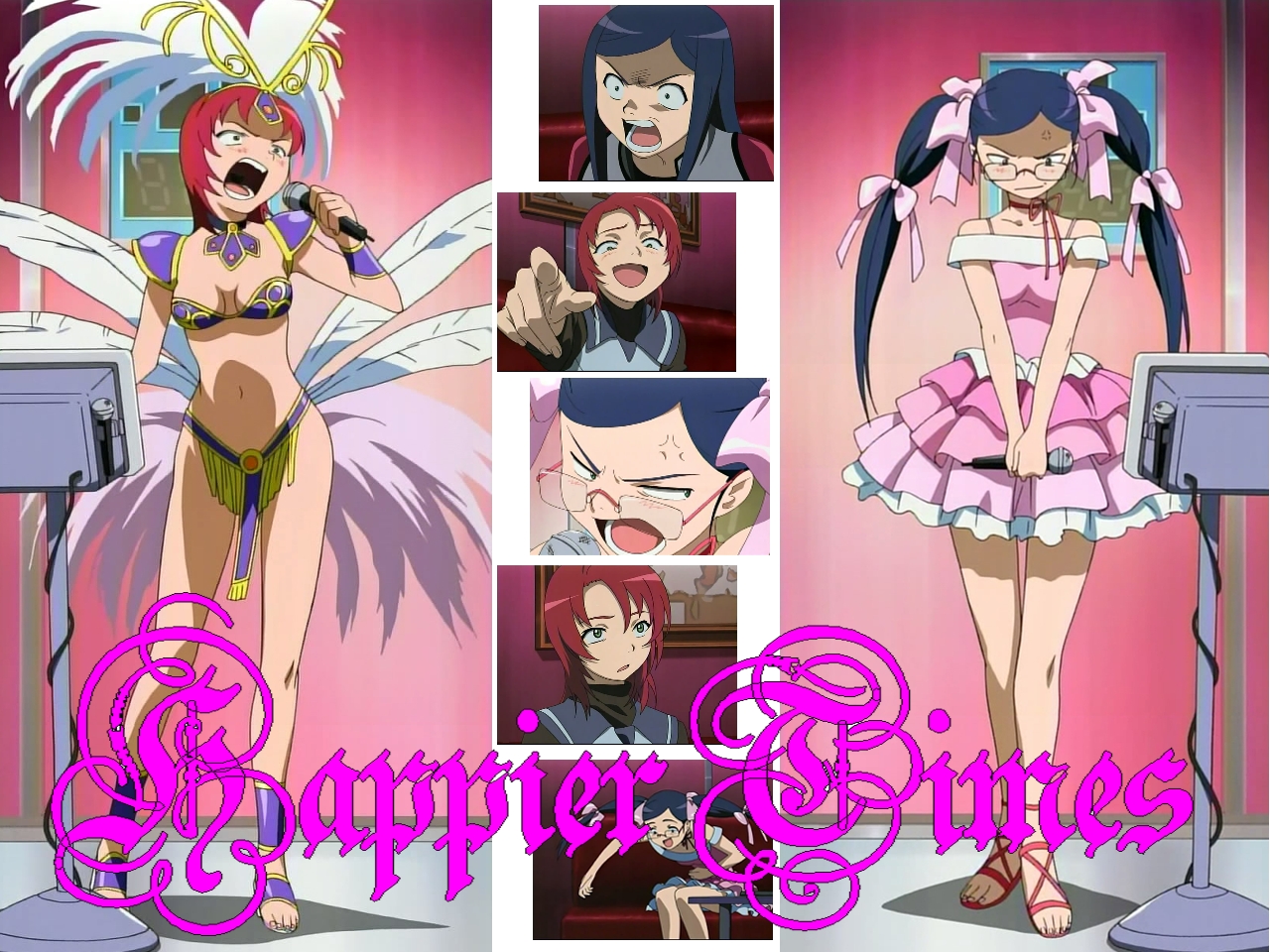 Description: A cartoon picture of a woman in a pink dress and a man in a black suit and a pink dress.