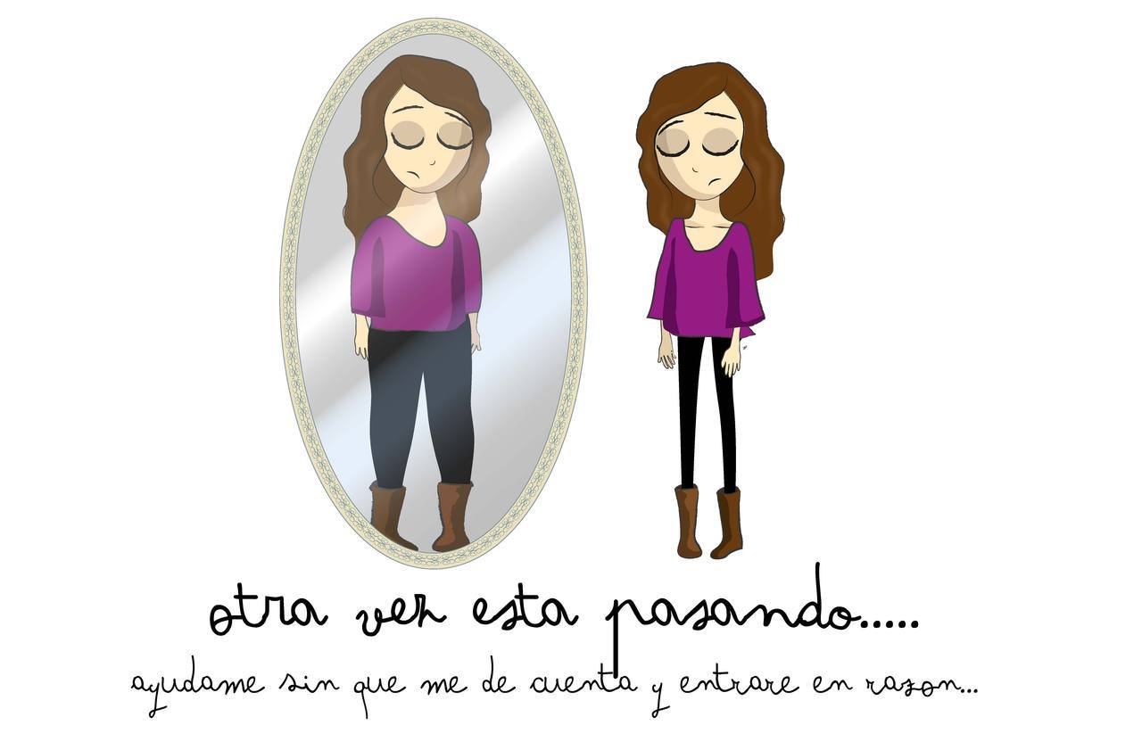 Description: A woman standing in front of a mirror with her eyes closed and her hair in a bunt.