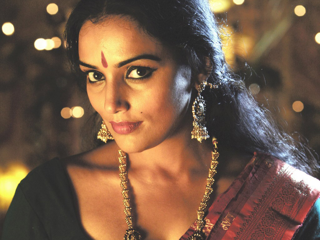 Description: A woman wearing a necklace and earrings with a dark background of lights in the background and a woman with a green blouse.