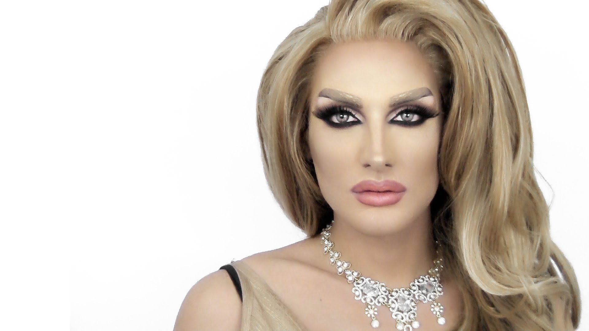 Description: A woman with a necklace and a necklace on her neck and a necklace on her neck and a necklace on her head.
