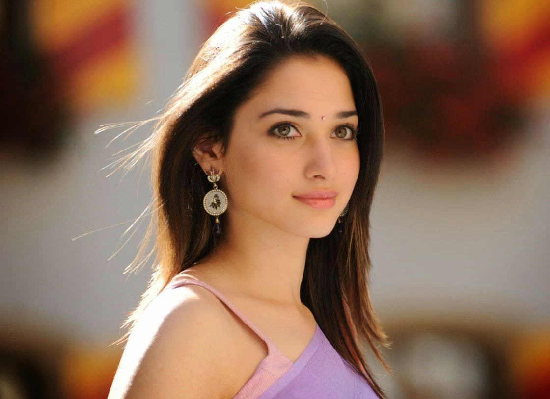 Description: A woman with a purple dress and earrings on her head and a wall in the background with a painting behind her.