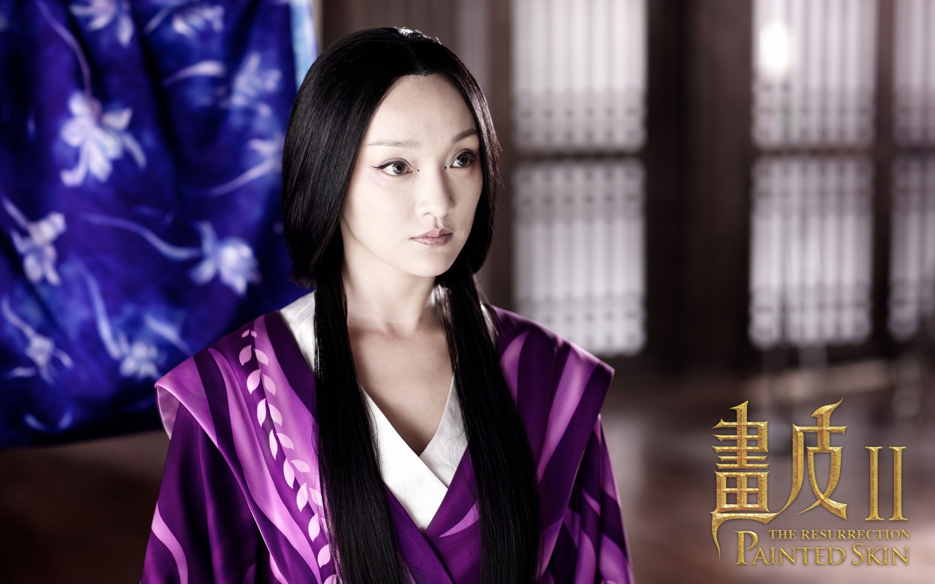 Description: A woman in a purple and white dress and a blue and white curtain and a blue and white curtain.
