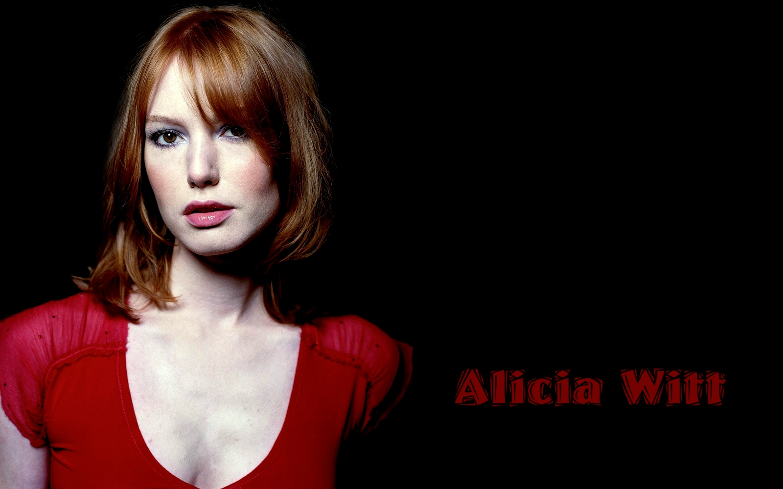 Description: A woman in a red dress with a black background and a red background with the words.