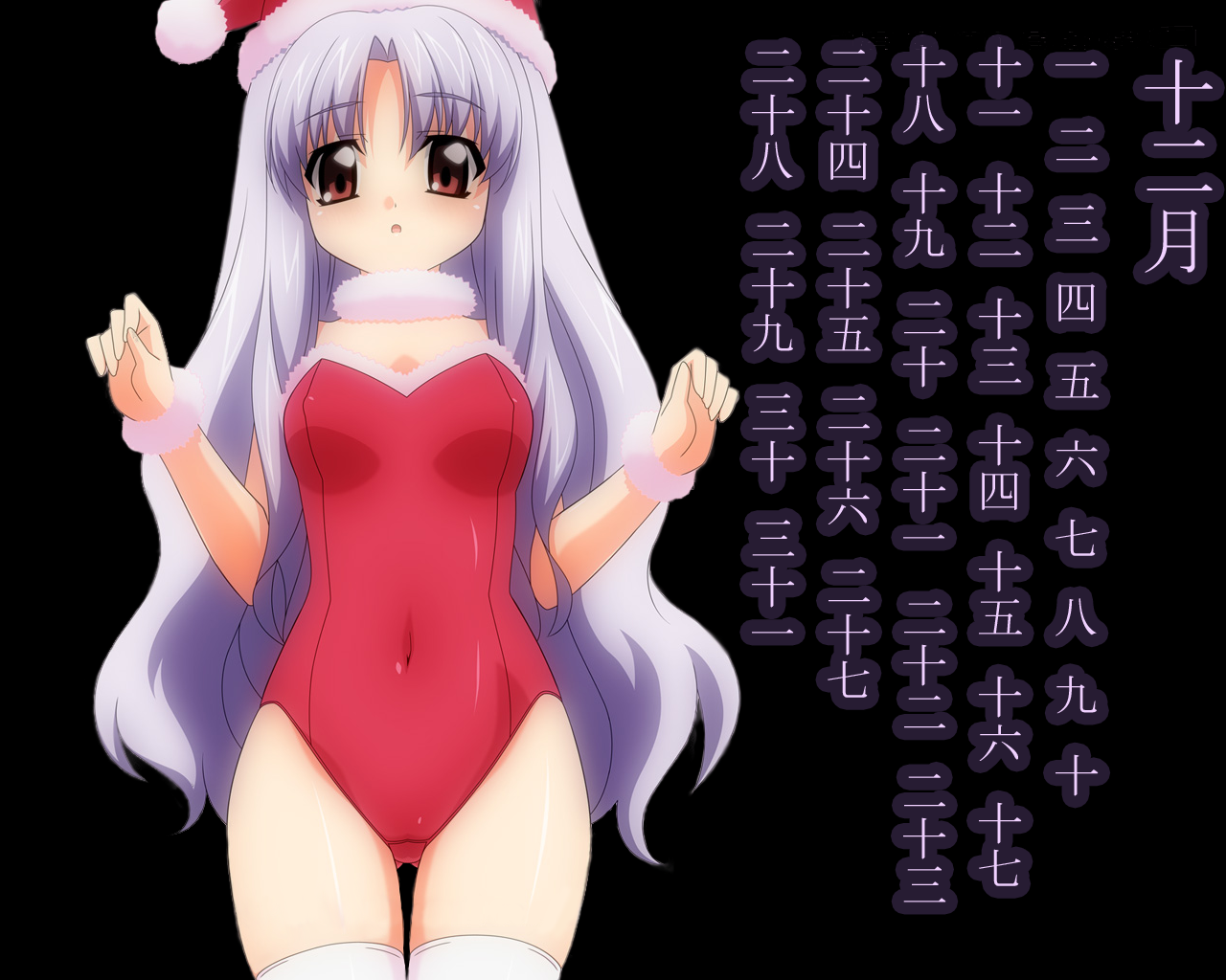 Description: A woman in a red dress and a santa hat with long hair and a pink dress with a red bow.