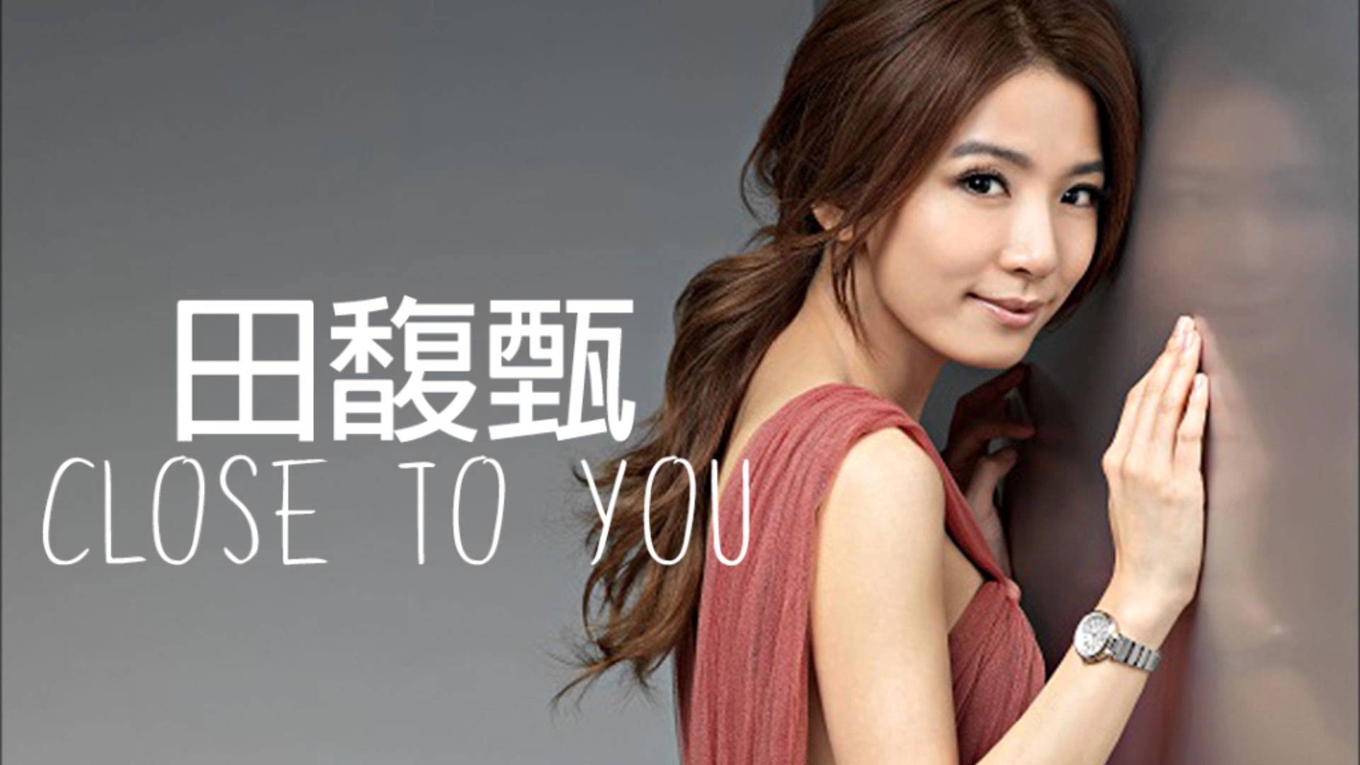 Description: A woman in a red dress is posing for a picture with a watch on her wrist and a message that says close to you.