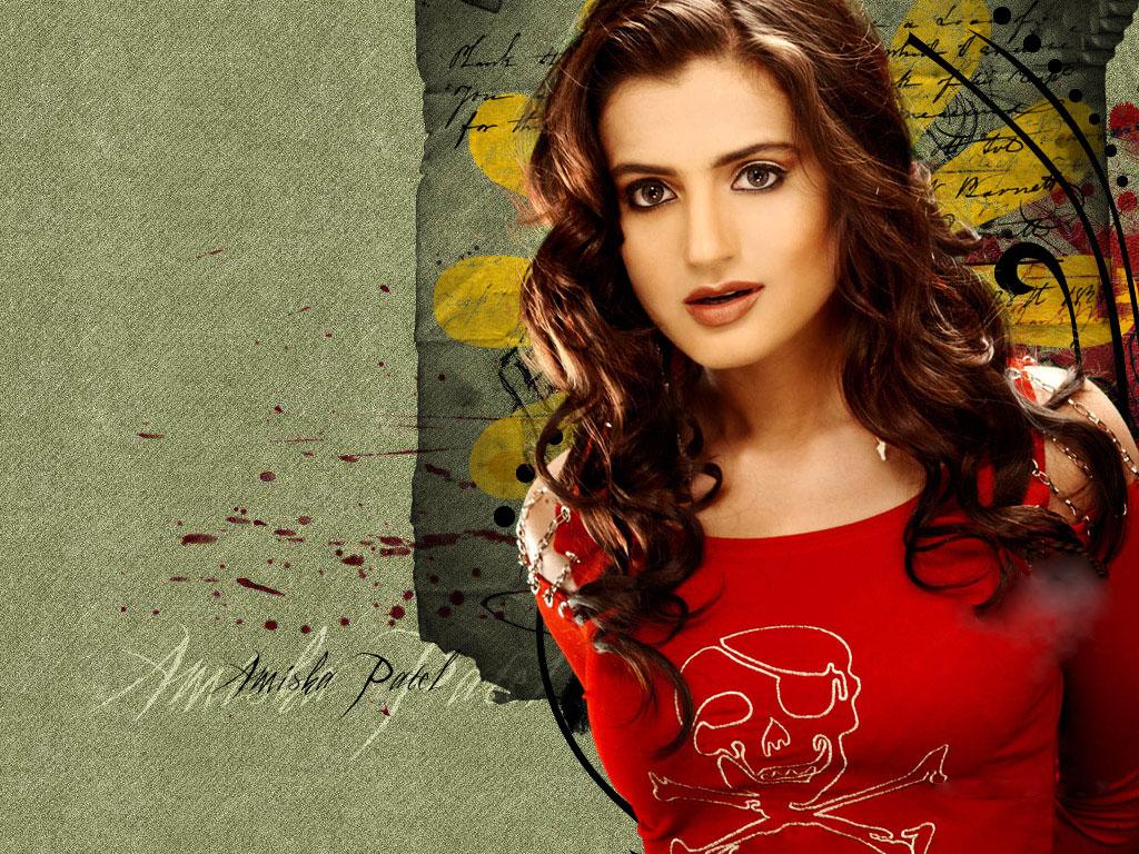 Description: A woman in a red shirt with a skull on it's chest and a green background with a yellow flower.