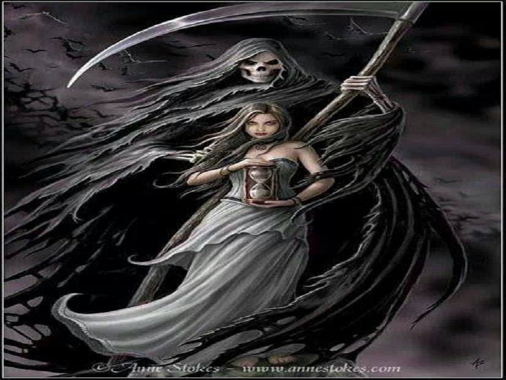 Description: A woman holding a sculler with a skeleton on it's back and a grimy grimy grimy grimy grimle on her face.