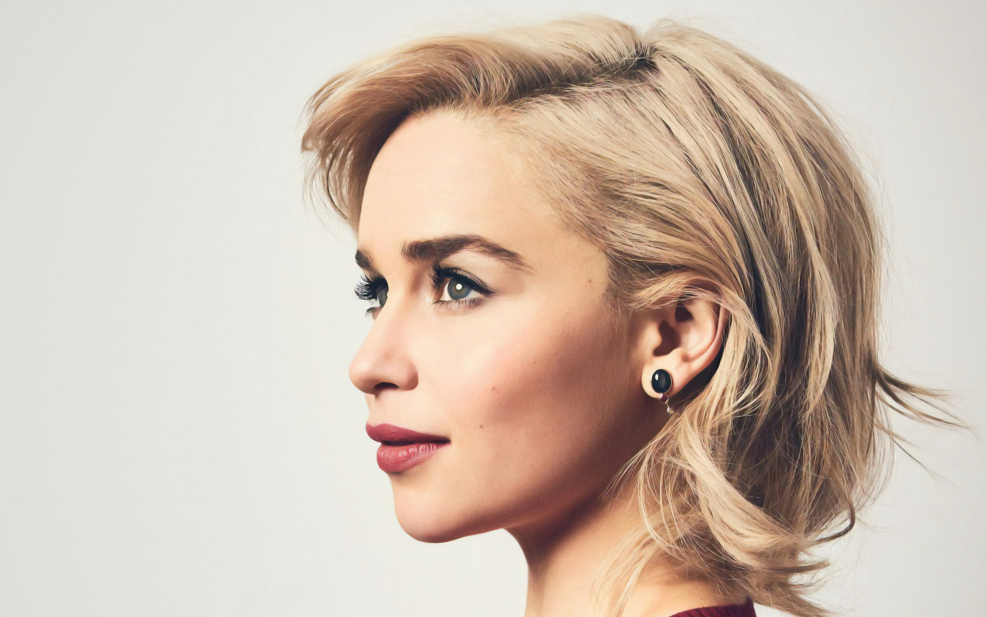 Description: A woman with a short haircut and earrings on her head.